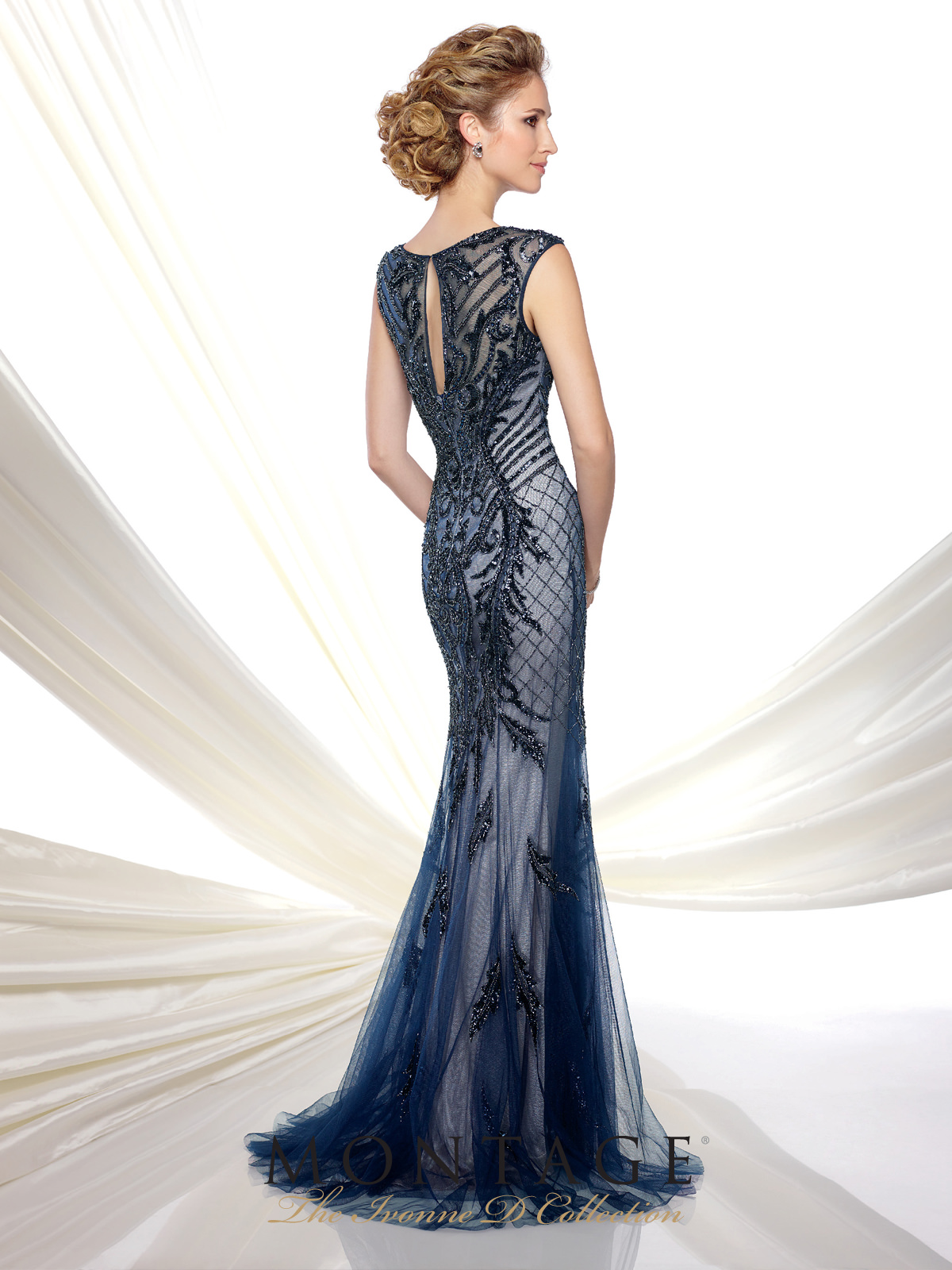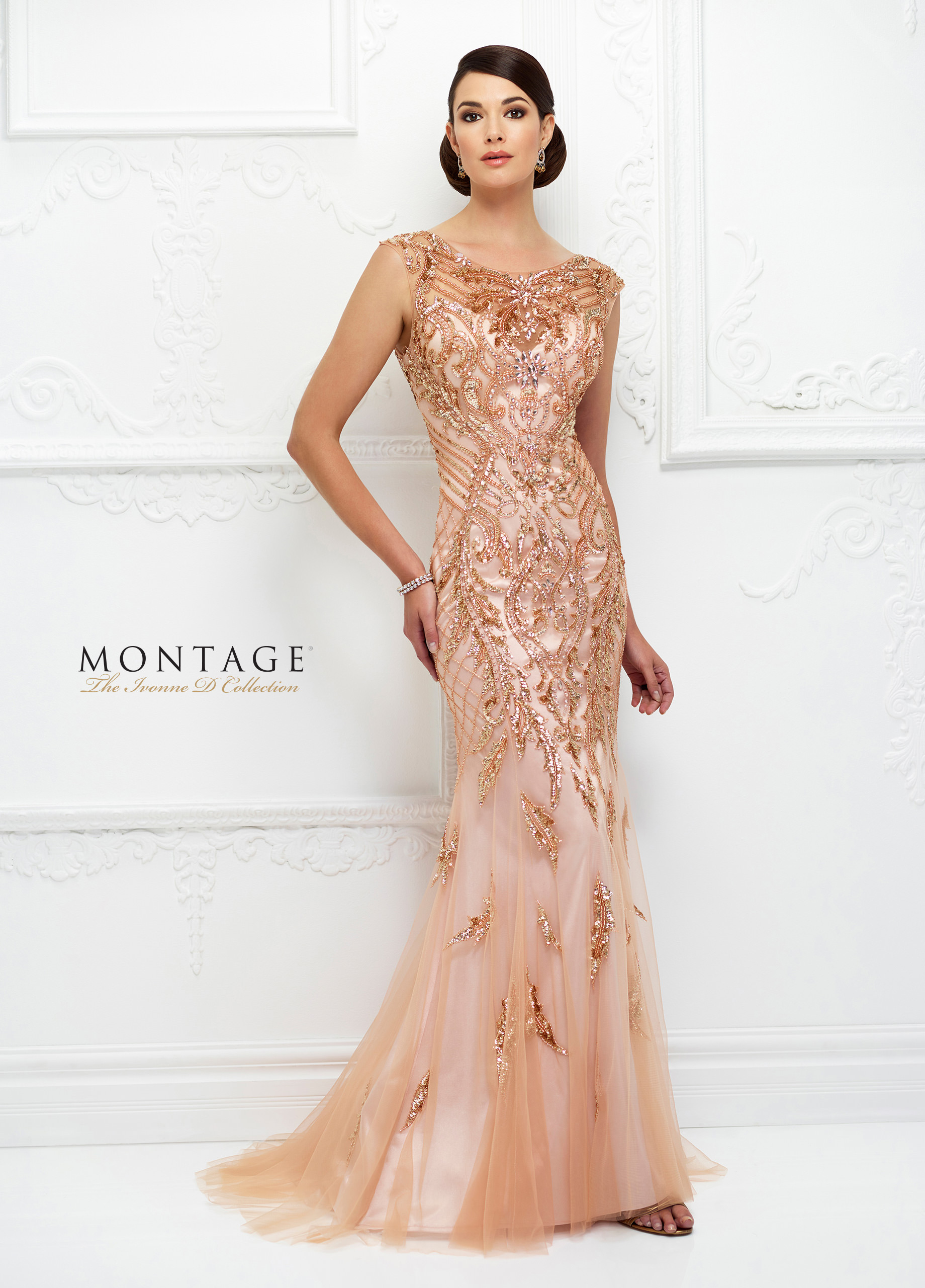 Hand-beaded tulle trumpet gown with illusion cap sleeves, illusion bateau neckline over sweetheart bodice, illusion keyhole back, dropped waist, skirt with godets and sweep train. Matching shawl included.