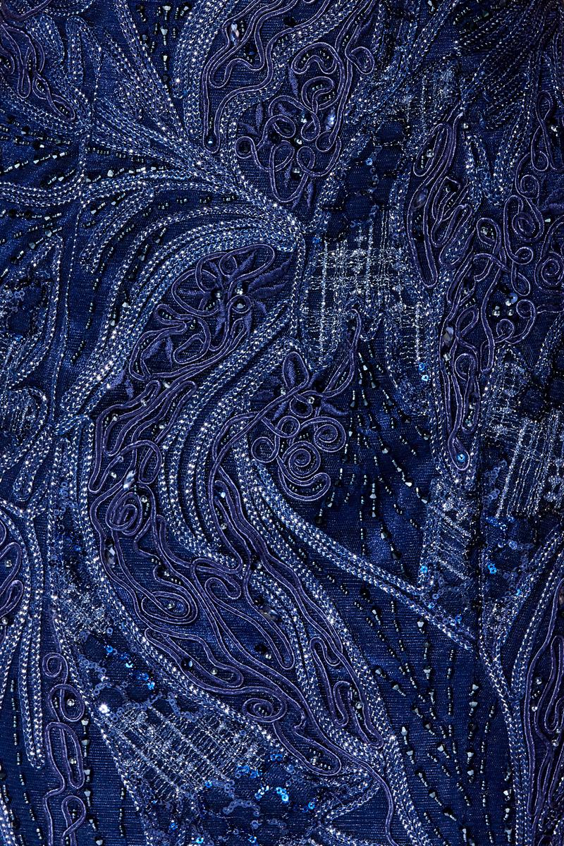 Length: Long, Silhouette: Modified Mermaid, Neckline: Modified Sweetheart, Sleeve Type: Fashionable Puff Sleeves, Fabric: Embellished Tulle with Embroidery, Metallic Ribbon and Beading, Special Features: Separate Beaded Strap & Shawl Included