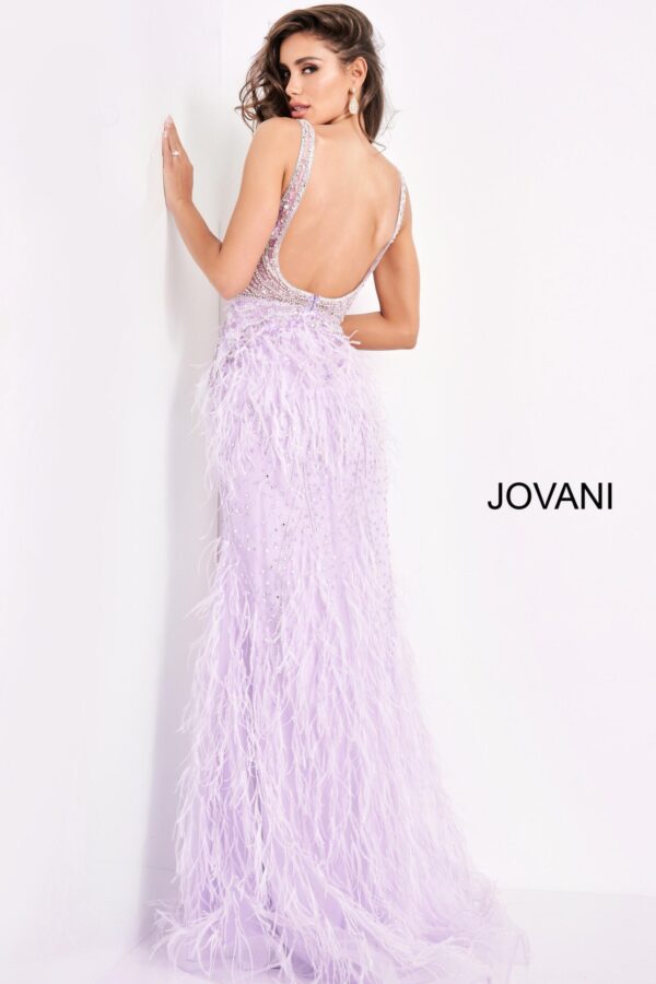 Jovani 03023 Sheer Embellished Bodice Feather Prom Dress