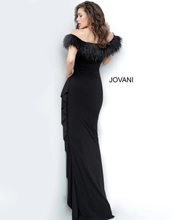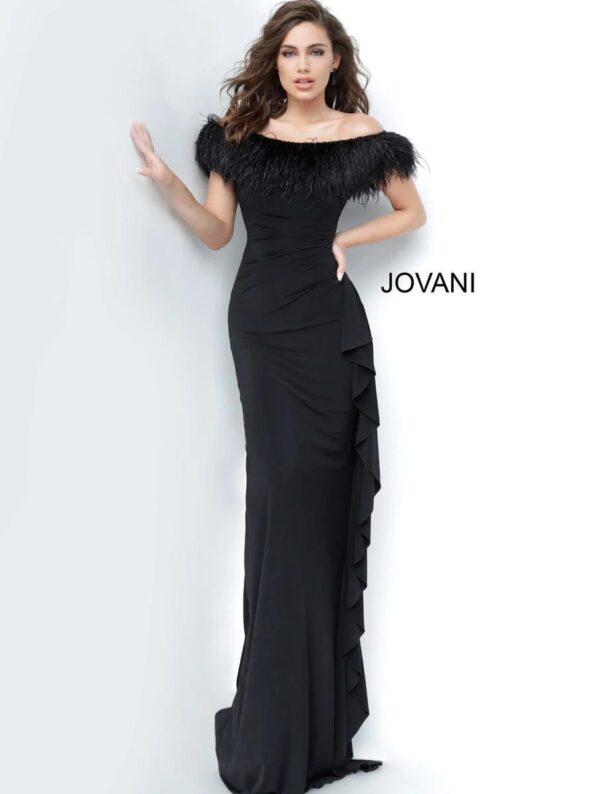 Jovani 1147 Off the Shoulder Feather Neckline Evening Dress