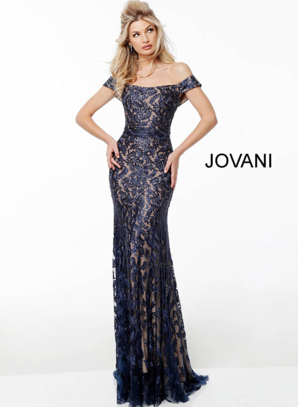 Jovani 49634 Off the Shoulder Embroidered Dress