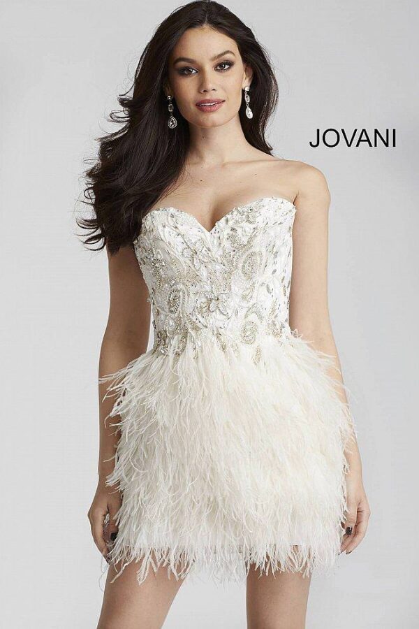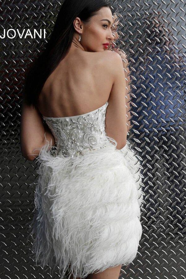 IVORY STRAPLESS FEATHER SHORT DRESS 50122