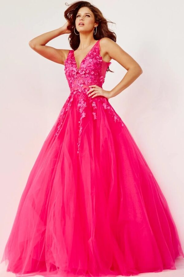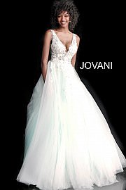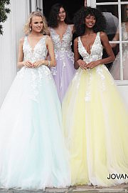 Floral Appliques V Neck Prom Ballgown Jovani 55634