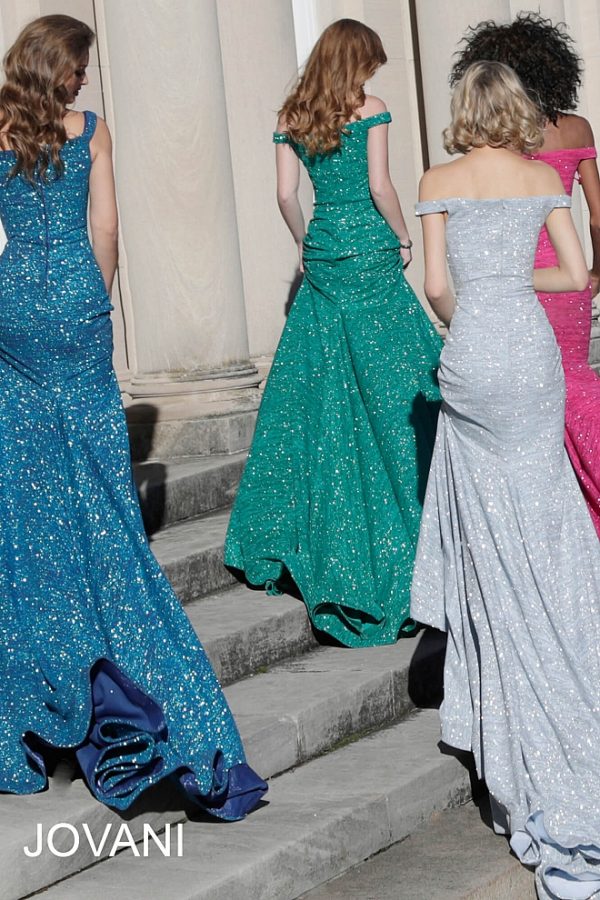 Off the Shoulder Fitted Glitter Jovani Dress 60122