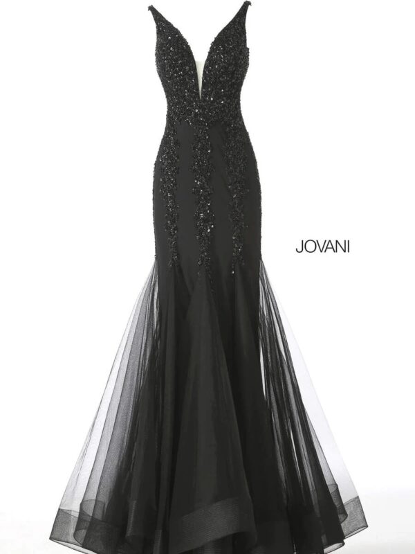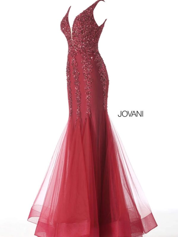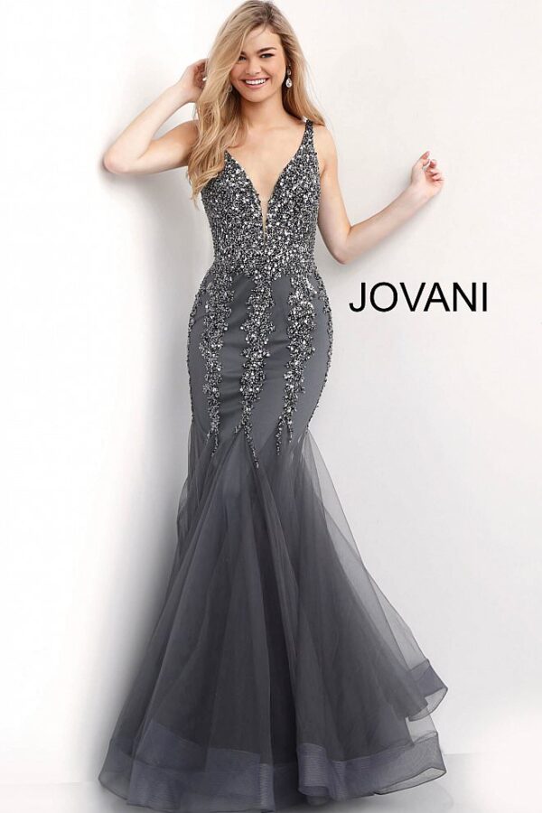 Plunging Neckline Beaded Mermaid Prom Dress Jovani 63700